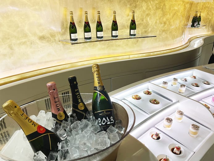 This bubbly experience extends to solid ground as well, at the Emirates Lounges in Dubai. Of note is the dedicated Moet & Chandon Champagne Lounge at the Concourse B Business Class lounge at Dubai International Airport. Designed to resemble a swanky wine bar, there are four distinct cuvees by Moet & Chandon – Imperial Brut, Imperial Grand Vintage 2013, Rose Imperial and Nectar Imperial.