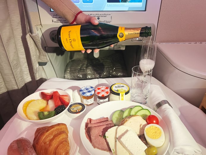 Since this is Emirates, the answer naturally is, “Champagne, please.”