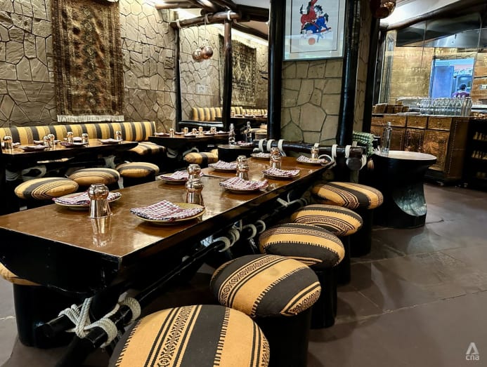 Bukhara's giant Naan Bukhara and Dum Pukht's Murgh Khushk Purdah. (Photos: CNA/May Seah, Dum Pukht)