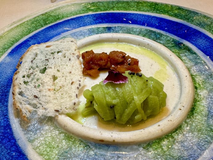 Dessert was equally charming: A little nest of spun sugar, in which what looked like a chicken egg rested. A whack of a mini hammer, and the egg split perfectly into two halves, revealing its fennel panna cotta “whites” and mango and ginger jelly “yolk”. It wasn’t just an artful, social-media-worthy gimmick – it also tasted really good.