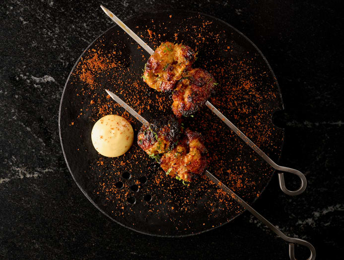 For those who may prefer tiny bites, think yakitori-meets-tandoori when skewers of chicken neck and wing are charred to smokey perfection in a tandoor oven that has been specially imported from India. Another dish showcases tender, wobbly squares of grilled paneer cheese which have been flown in from New Delhi that pair perfectly with the chunky texture of Goan sambal.