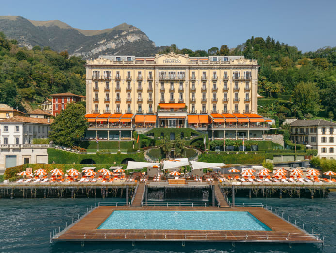 Grand Hotel Tremezzo has a completely different vibe from its sibling. Located a half-hour drive from Passalacqua, the classic Art Deco building is a party-loving Wes Anderson film cut-out with lively orange pops.