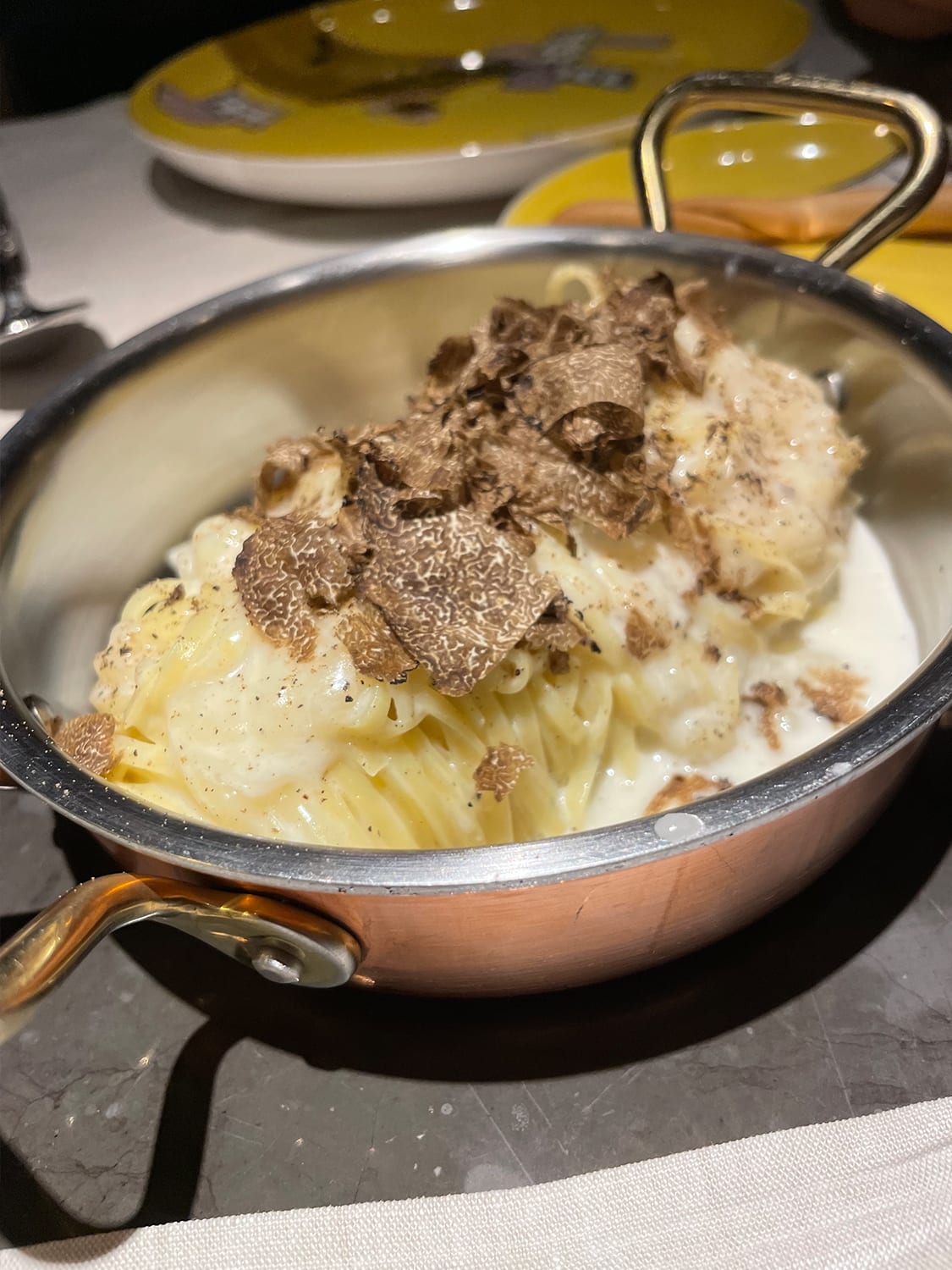 There was drama. At the L’Escale Trattoria & Wine Bar, the cacio e pepe was prepared tableside in a flaming cheese wheel, no less. Bragging rights were also delivered – at Terrazza Gualtiero Marchesi, the only restaurant in the world that serves the signature dishes of the late chef Gualtiero Marchesi, revered as the founder of Italian nouvelle cuisine, his famous saffron rice topped with a gold leaf square came with authentication certificate number 118,500.