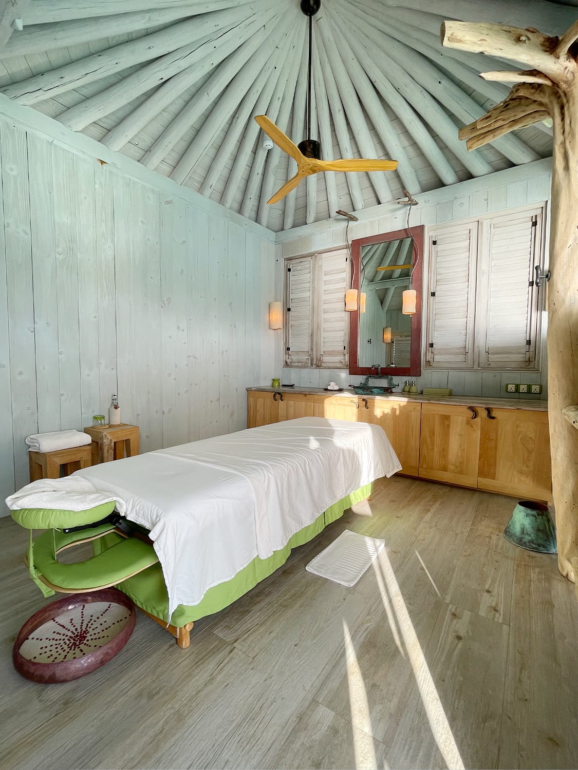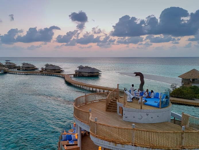 Villa sizes start from 4,822 sq ft. I was told that my 4,962-sq-ft Overwater Hideaway (Villa 12) at the end of the boardwalk is the one to book for maximum privacy. It felt like an expansive but cosy home, and then some. On the lower deck was a mini gym and a pantry with an induction hob, minibar and a wine fridge. On the upper deck are a spa treatment room and Soneva’s signature slide that curves into the sea.