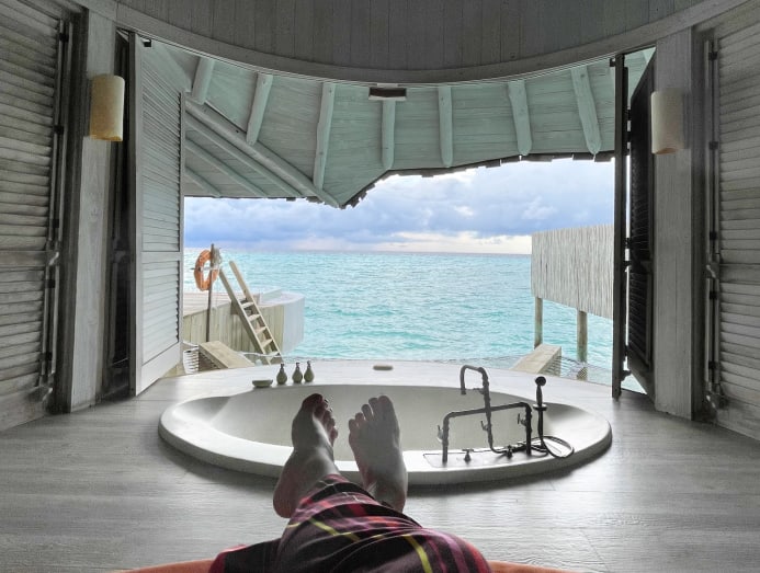 After a five-hour flight from Singapore to Male, it is a 75-minute jaunt on a Soneva seaplane from Male to Soneva Secret. The moment you step out onto the jetty, the “no news, no shoes” policy kicks in. My footwear was collected and stashed away in a linen bag, never to be seen again until the day I left. The resort is in the Haa Dhaalu Atoll in the northern part of the Maldives, and it is so remote that the nearest inhabited island Makunudhoo is a 15-minute speedboat ride away.
