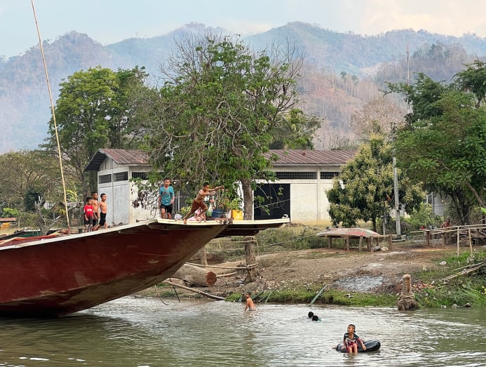 I was lulled out of my evening meditation by the sound of children shrieking with laughter, and realised our river boat had docked at the edge of a small village. A short distance away, barefoot kids were diving off a well-used fishing boat, their limbs flailing as they plunged into the Mekong with reckless joy.