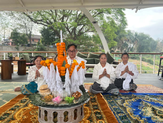 A Baci ceremony on board the Boheme before departure on the first morning. (Photo: Mekong Kingdom)