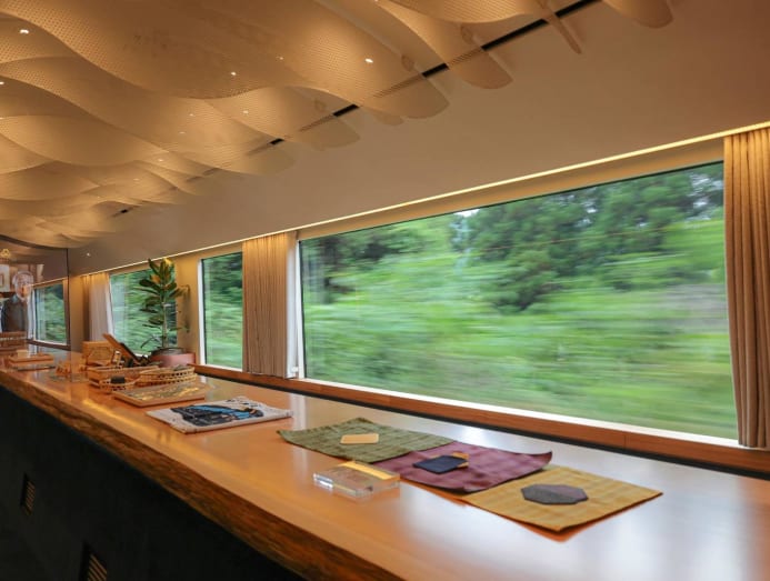 For day-tripping sightseers in Kyushu, the new Kanpachi Ichiroku train enables you to gaze at the countryside while enjoying bento box meals that look (almost) too good to eat. Offering a soothing, minimalist atmosphere, the train has two runs. The Kanpachi service departs from Hakata-ku, Fukuoka, then travels to Oita prefecture; stops include Tanushimaru station, where part of the building has a head-and-beak design meant to resemble a kappa, a water creature from Japanese folklore, and Era station, where vendors sell local specialties. The Ichiroku service, begins at Beppu and ends at Hakata, with stops at Amagase station, where you can buy fortune telling tickets that reveal their message when soaked in the hand and foot baths at the station, and Ukiha station, where you can try produce from this region. Choose from sofa-style seats, cosy box seats and private tatami rooms that can accommodate up to six with mats, seating, tables and big windows from which to watch the landscape roll by.