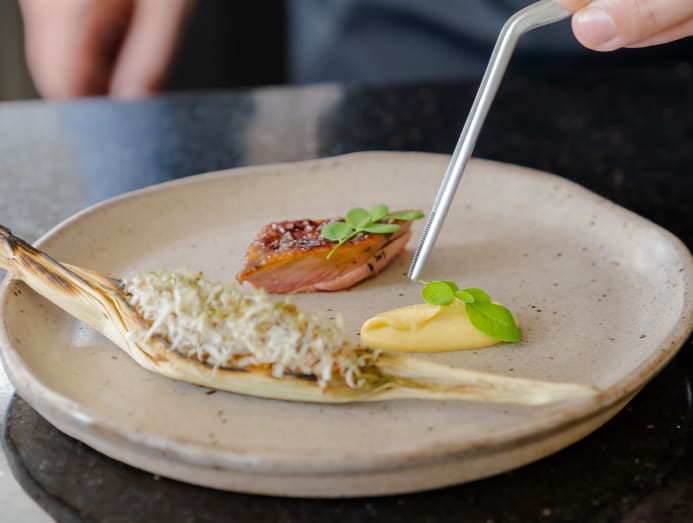 The restaurant – a stylish and spacious terracotta-themed dining room with floor-to-ceiling windows facing the garden – takes diners on a multisensory culinary journey of colour, taste and texture with each dish meticulously presented like a work of art.