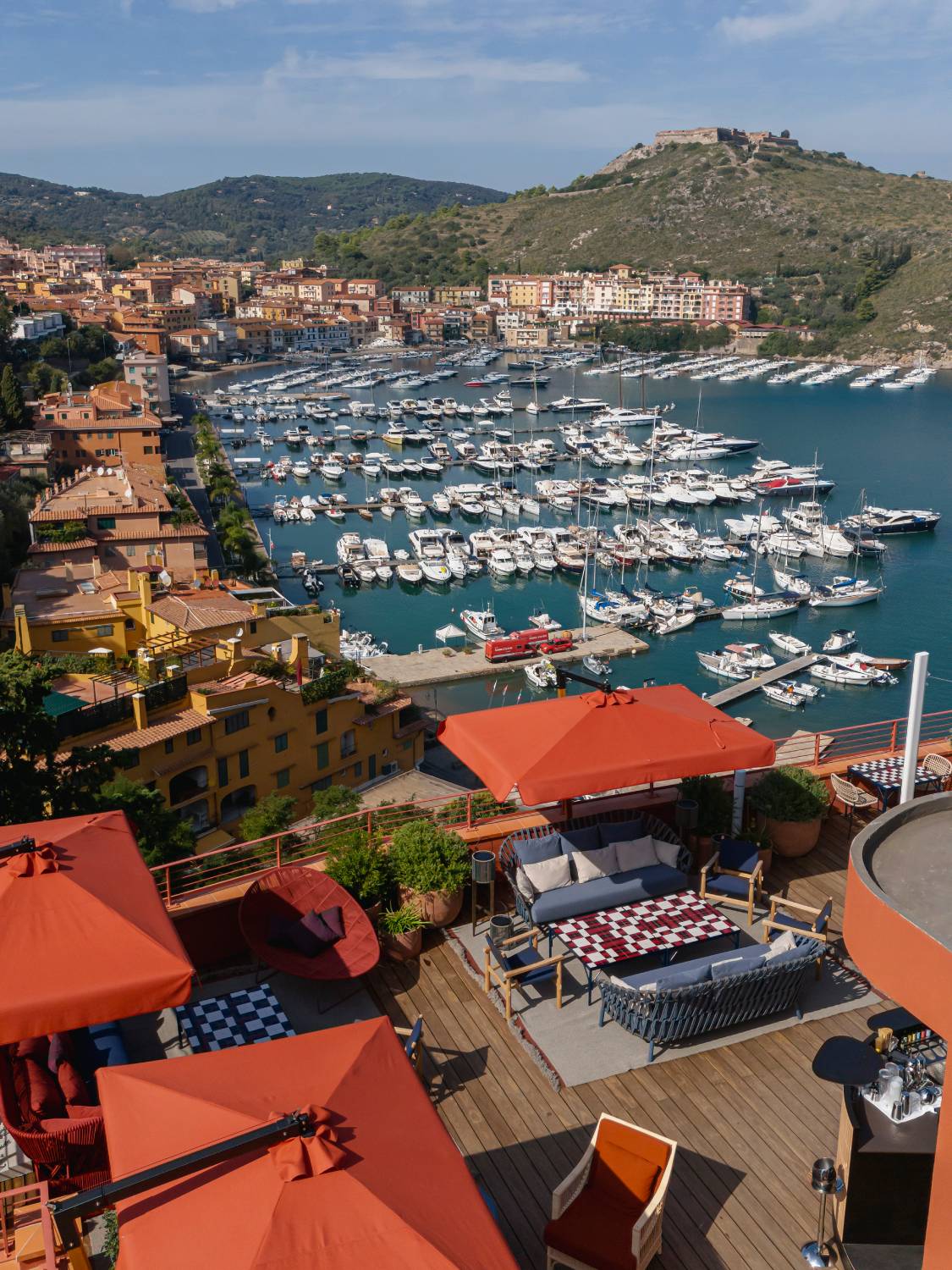 On the harbour of Porto Ercole on Tuscany’s Argentario peninsula (about an hour-and-a-half-to-two-hour drive from Rome), La Roqqa underwent a three-year renovation and is now a 50-room-and-suite boutique hotel designed by the Milan-based Palomba Serafini Associati studio. Bold lighting and furniture from the 1960s and ’70s add nostalgic touches to the common areas, while many of the minimalist guest rooms are awash in the colours of the surrounding land and sea. Suites, in contrast, sport lighter hues. All rooms have outdoor spaces with views of hills and trees, or the sea.