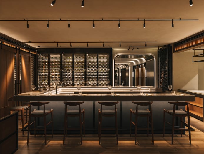 The dining room feels familiar. A buzzy marble-topped bar, bowls filled with colourful produce, gabion stone walls against dark wood panelling – a modern Tuscan farmhouse, if you will, after a stylish sweep of an American design specialist’s wand (in this case, San Francisco Bay Area studio EDG Design).