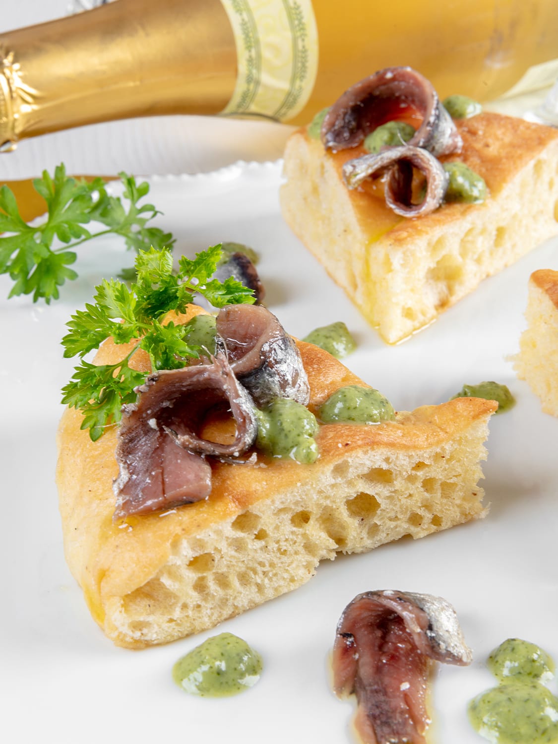 The nine-course degustation menu, will feature a variety of doughs, including a buttery pan brioche base topped with anchovies in salsa verde; and a crisp corn-based crust bearing gambero rosso with burrata and Iberico lardo. (Photo: Massimiliano Prete)