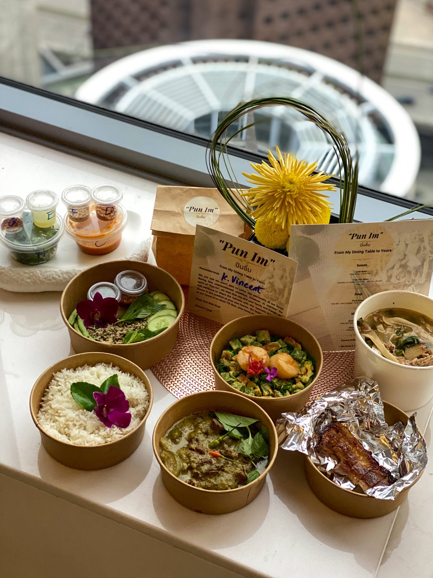 From his menu of Thai-French fusion creations, chef Vincent Pang has selected items that can be easily re-heated and whose textures would not be compromised during transport.