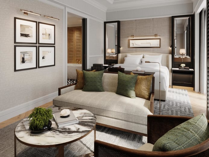 The resort is designed by Bangkok-based interior design firm P49 Deesign. Suite options include the Deluxe Suite, Premier Suite, Grand Deluxe Suite and Presidential Suite. Each suite offers “luxurious bedding that promises a restful night’s sleep” and “sleek monochromatic accents that reflect timeless sophistication”, RWS said in a press release.