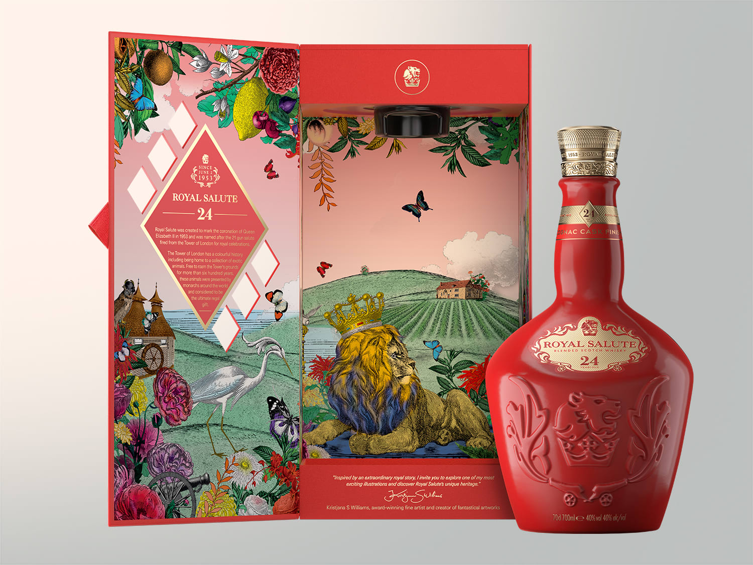 Meanwhile, depictions of the Scottish lion, the iconic Strathisla distillery in Speyside – home of Royal Salute – and the Tower of London narrate the whisky's journey from Scotland to England and ultimately to Asia.