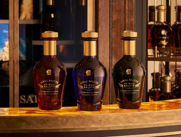The Royal Salute 62 Gun Salute Collection comprises the award-winning cornerstone, 62 Gun Salute Original Reserve, and two new complements – The American Oak Reserve and The Peated Reserve. (Photo: Royal Salute)