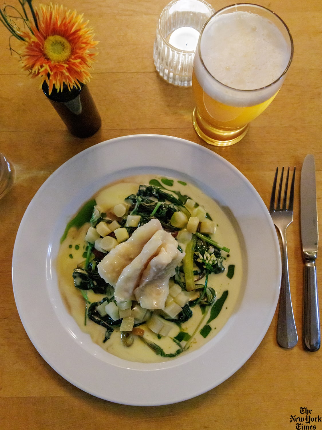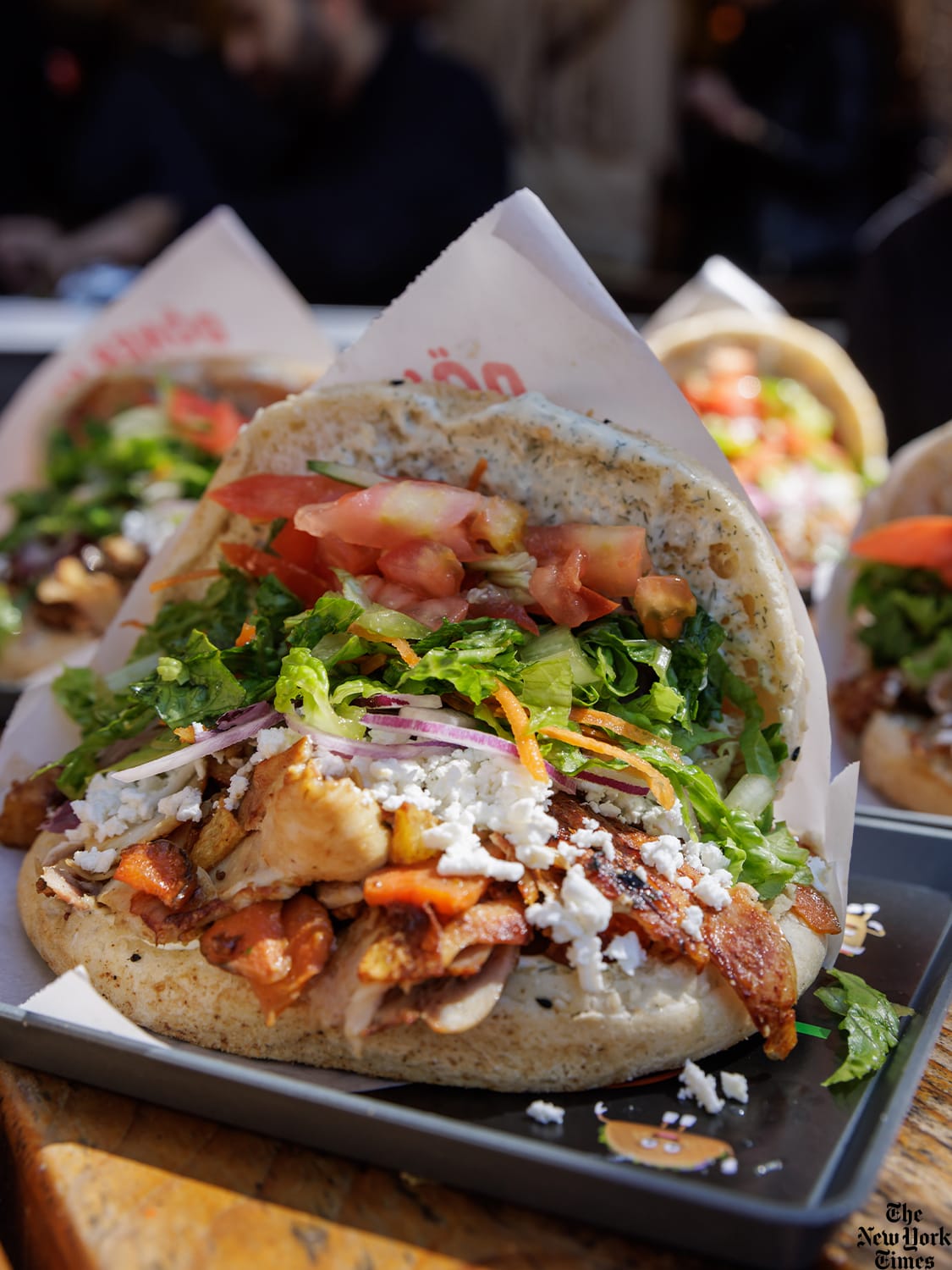 As you leave the Kulturbrauerei, you might see a line on the block and hear reggaeton and rap. Follow the music to its source, Ruyam Gemuse Kebab 2, one of the fast-food shop’s two locations, to taste a famous Berlin dish: Vegetable kebab. Graffiti is scrawled on the walls and the friendly staff — who shout their thanks every time a visitor leaves a tip — give the entire operation the feeling of a party. The sandwiches are filling and tasty: Fluffy bread is stuffed to the brim with sliced chicken — a vegetarian option skips the meat — along with fried potatoes, onions, carrots, lettuce, fresh herbs, lemon juice and garlic sauce (6.90 euros, cash only).