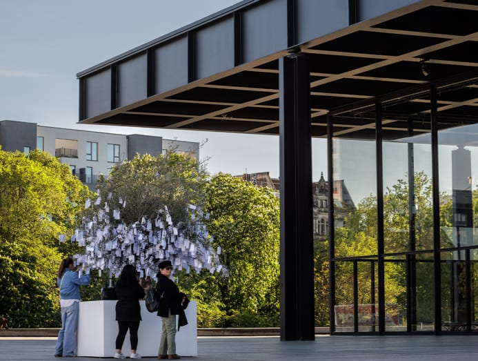 At the Neue Nationalgalerie, or New National Gallery, the main exhibition, on view indefinitely, showcases art from 1945 to 2000. Short essays provide context on cultural, economic and political shifts during those periods. Lucio Fontana’s slashed canvas hangs next to a text about the 1950s economic boom and a throwaway society, and a video of Marina Abramovic’s 1975 performance Freeing the Body plays alongside an essay on oppression, objectification and liberation. The Gerhard Richter exhibition, on view until September 2026, includes one of the artist’s most famous works, Birkenau, a meditation on the Holocaust. The museum leans into interactive activities. In the main exhibition, a machine with a hand crank pops out postcards with assignments — for example, to find a human-shaped sculpture and sketch its point of view. Grab a pencil and get going! Entry to all exhibitions, 20 euros (US$22; S$29)