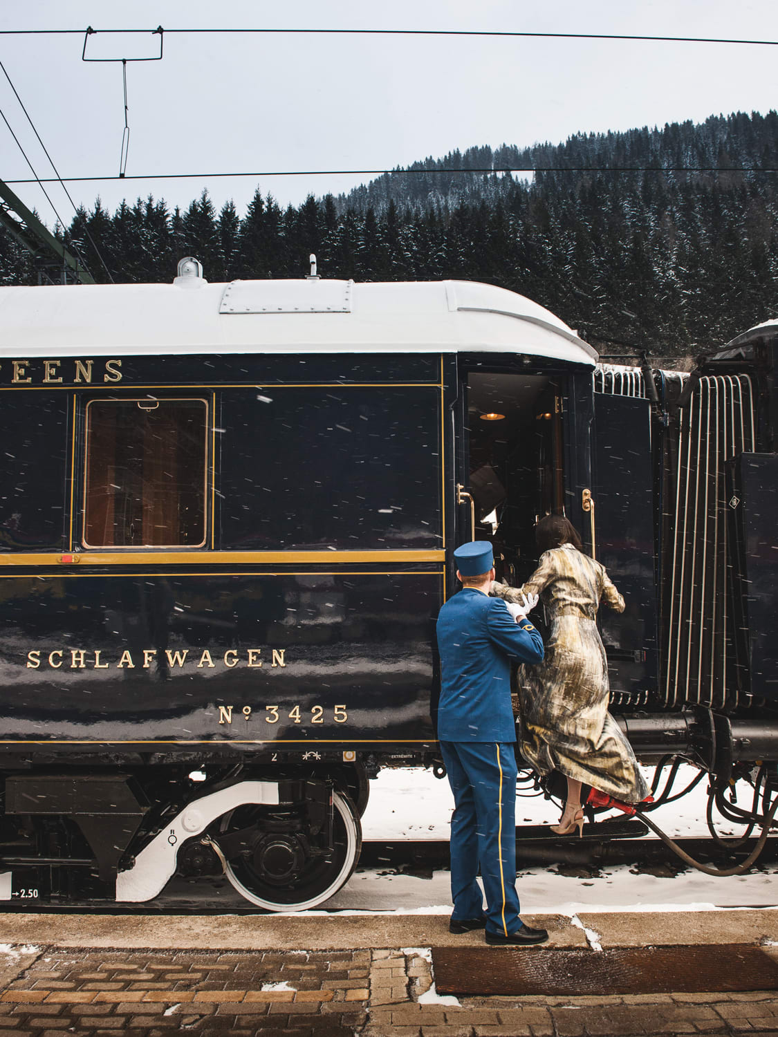 Glass of champagne in hand, CNA Luxury climbs aboard the legendary Venice Simplon-Orient-Express for its first-ever winter journey to the French Alps.