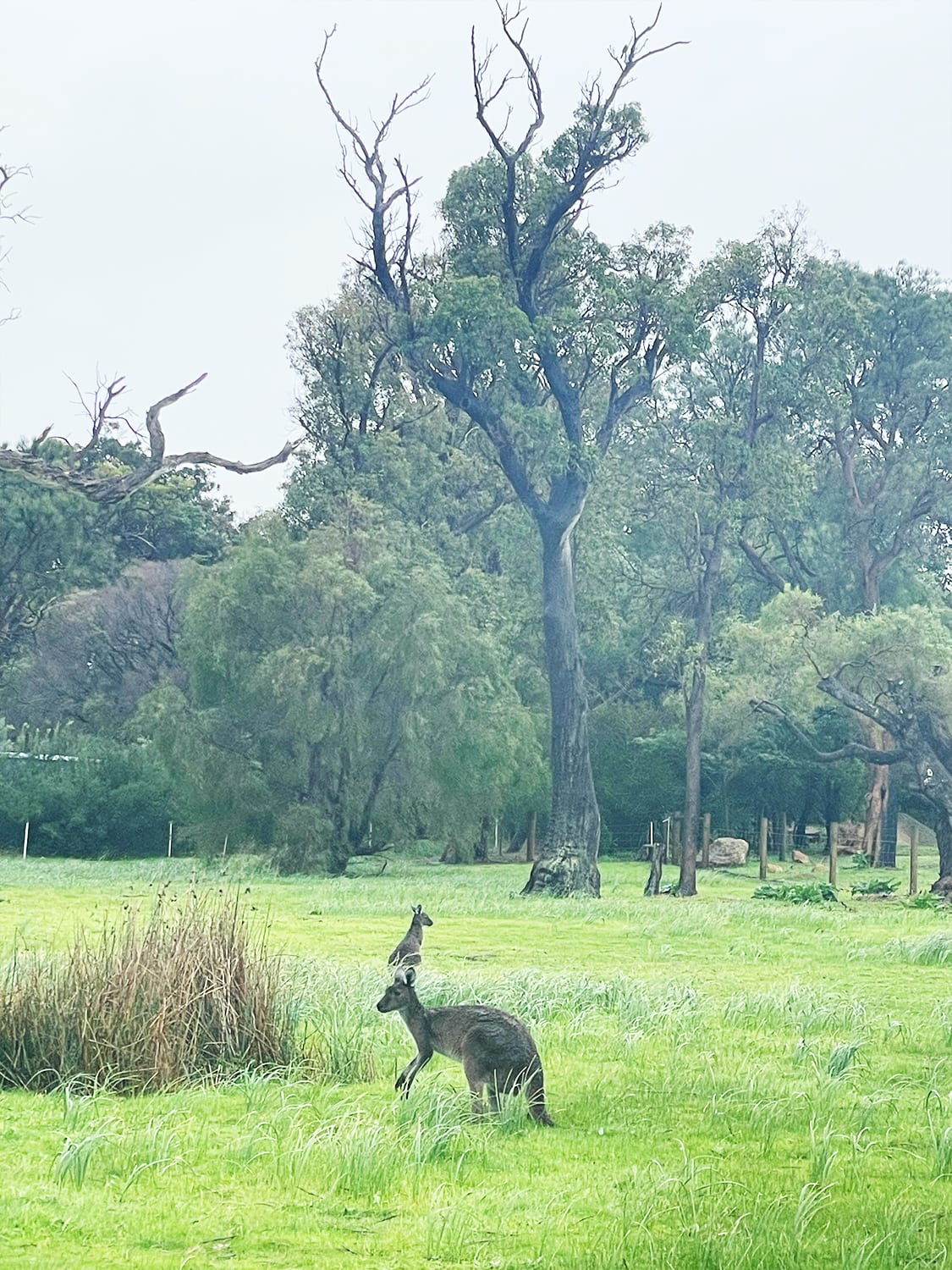 Wildlife encounters abound on land as well. We were rewarded with kangaroos and joeys (baby kangaroos) sightings, hippety-hopping their way across the land and emus running across the road.