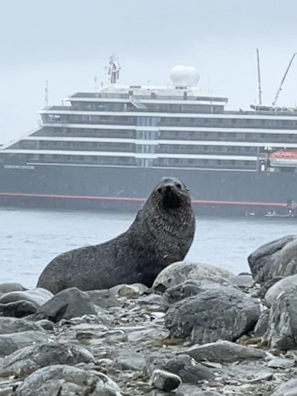 That’s one thing they never mention in the Seabourn’s glossy brochures. That penguins poo everywhere, staining entire swathes of white snow a vibrant red with their fishy-scented guano because of the vast amounts of ruby-hued krill they eat and then regurgitate to feed their young.