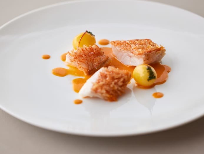 On Calvert’s watch, the fillet is carefully cooked on a hot pan with its skin and scales intact to bring a delightful crunch and textural contrast to the juicy flesh. A saffron sauce with tomatoes and clam jus adds even more depth of flavour.