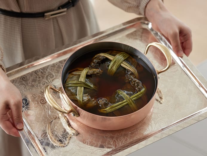 To add to it all, the impeccable service team enthralled our table with fascinating tales. For instance the main meat dish was venison procured from a hunter in Hokkaido who, get this, hunts with a bow and arrow. And in a masterful flex of his familiarity with Chinese ingredients after his years in Hong Kong, another showstopper was a Shanghai hairy crab cooked in yellow wine from the Jura region in France. Half a crab’s worth of meat per guest is then mixed with koshihikari rice and served in a delicate tart shell.