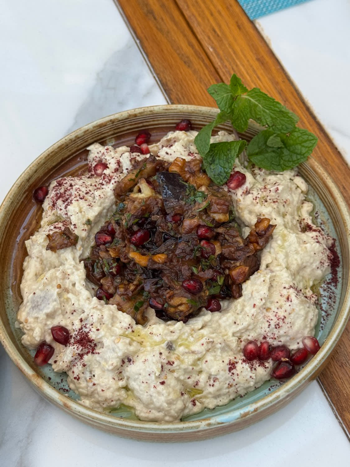 Meals often begin with luxuriously creamy hummus or moutabal dip where eggplants have been slowly charred, all served with pillows of soft and hot bread fresh from the oven. There are no foams or dry ice in sight, with almost everything made by hand – as she told us: “The only machine we own is a coffee machine!” A non-negotiable order is Fattet Musakhan, a beloved Palestinian specialty of tender chicken, caramelised onions, fragrant citrussy sumac, garlic-infused yogurt, and crispy nuggets of bread.