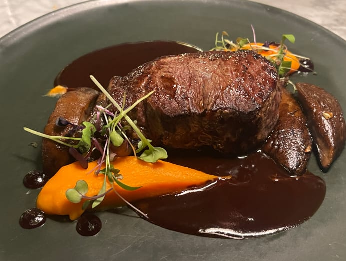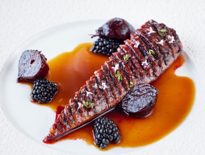 Stellar bites to start included caviar that crowned lobster and Jerusalem artichoke, cleverly served in the tin, before a crispy tartlet of brown crab, kohlrabi, tarragon and the citrus lift of calamansi. Turbot with grilled broccolini came in a fabulous sauce of turnip and mussels, before one of de Neergaard’s signatures of pigeon royal with beets, blackberries and a jus of Madeira and balsamic. A coconut sorbet to wrap featured passionfruit, mango and pineapple, again reflecting delicate Asian culinary accents, perfectly in tune with French technique.