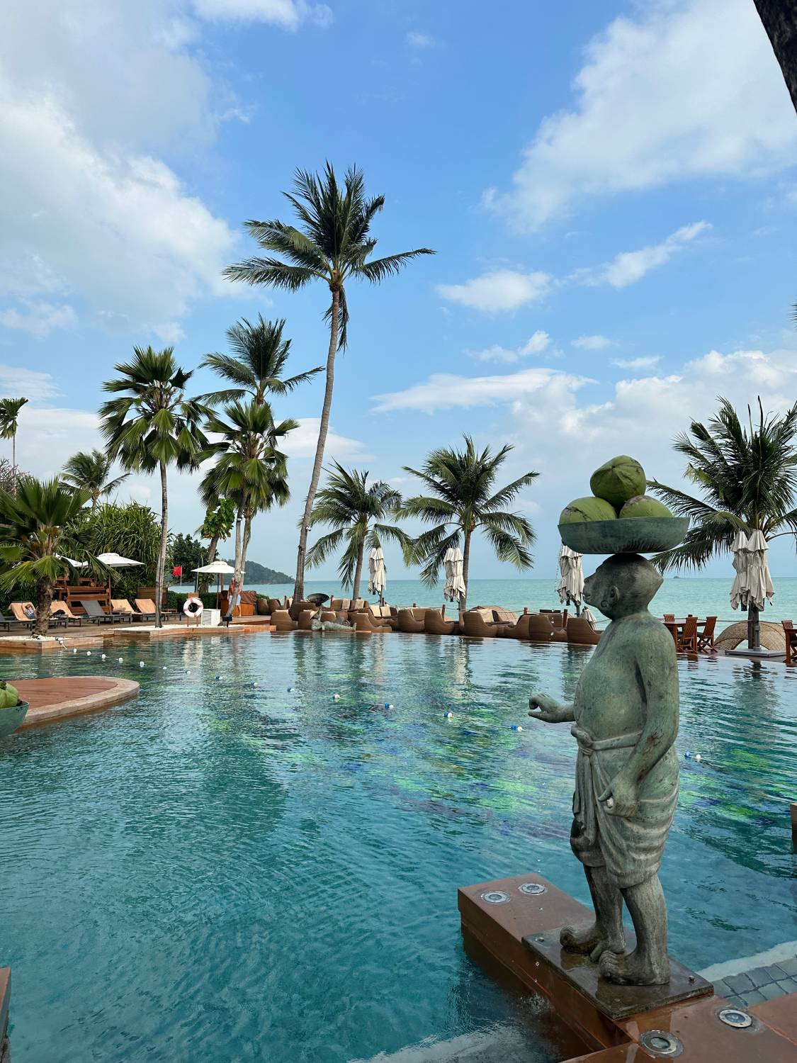 You can spend the morning by the swimming pool encircled by playful sculptures of monkeys — a tribute to the animals who helped fishermen gather coconuts back in the day. A lazy afternoon in the lush, 3,000-sq-m spa is a must, which boasts standalone treatment rooms that are the definition of indulgence (it featured quite heavily on the show). It’s one of the most transportative spas I’ve ever experienced, both in terms of design and the quality of the treatment.