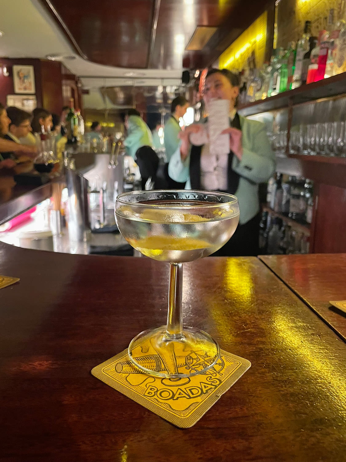 At Boadas Cocktails, the cocktail experience is straightforward yet sophisticated. The bartenders, dressed in tuxedos and bow ties, embody the bar's commitment to classic cocktail preparation.