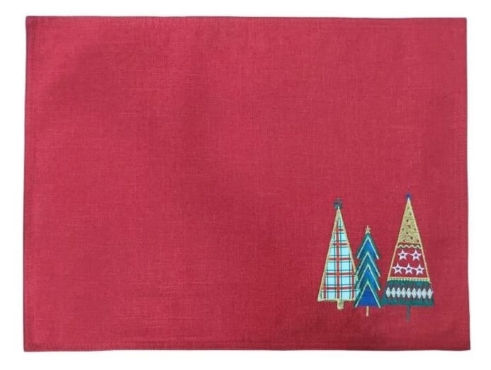 Enhance the festive vibe with this red placemat adorned with shimmery Christmas trees. Made from a durable polyester material and measuring 33x45cm, it protects your table while elevating the dining experience.