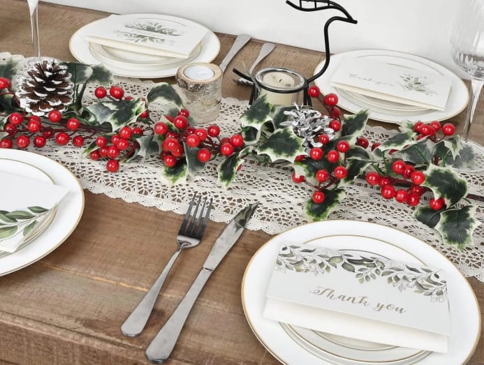 Bring a touch of nature indoors with this 1.8m garland featuring artificial red berries, holly leaves and pine cones. Its flexible stems allow for easy adjustment, making it an ideal decoration for tables, doorways and staircase railings.