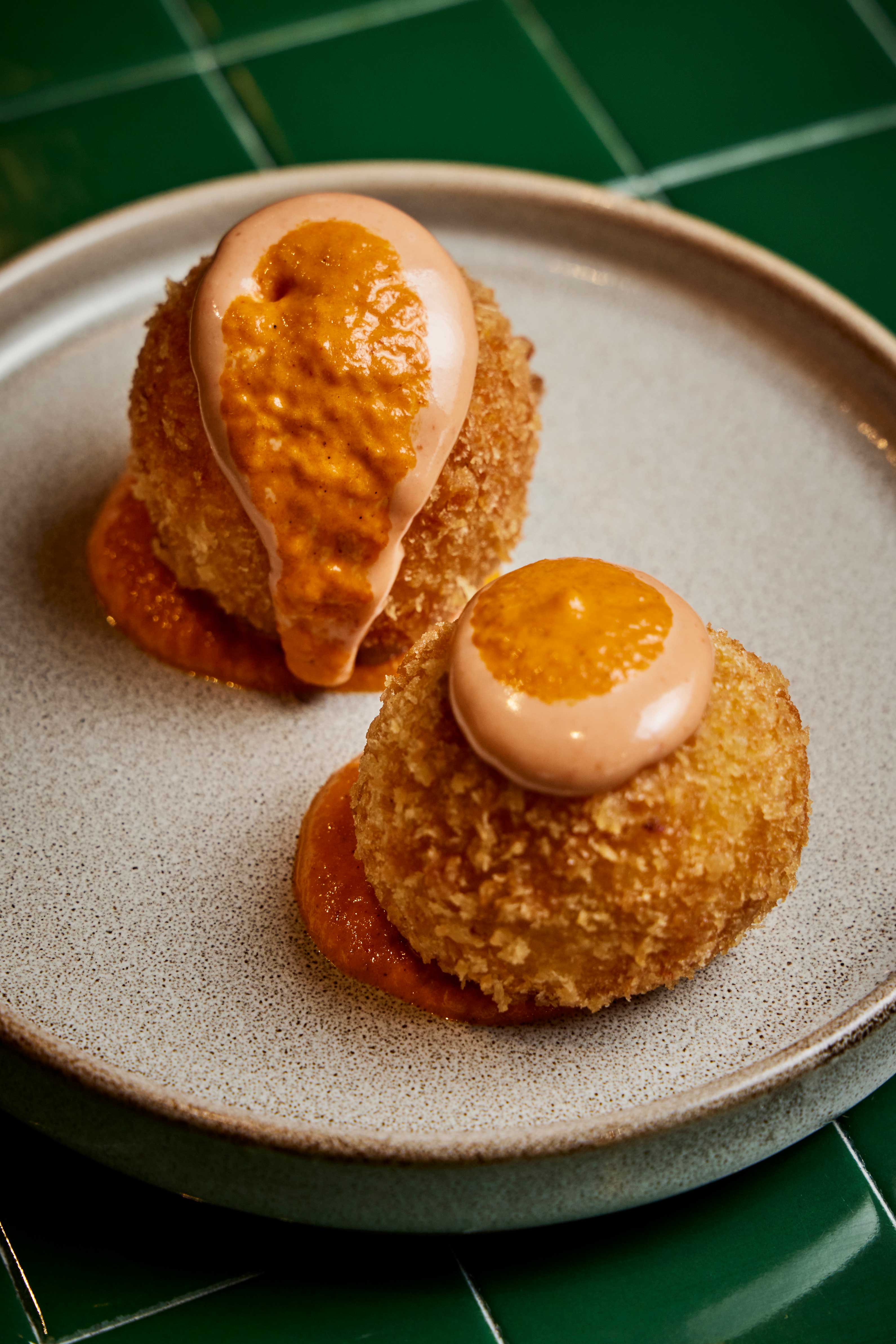 The crispy croquettes are stuffed with smoky, savoury chorizo, with a punchy boost from the spicy, creamy red pepper sauce. A classic that’s worth a try.