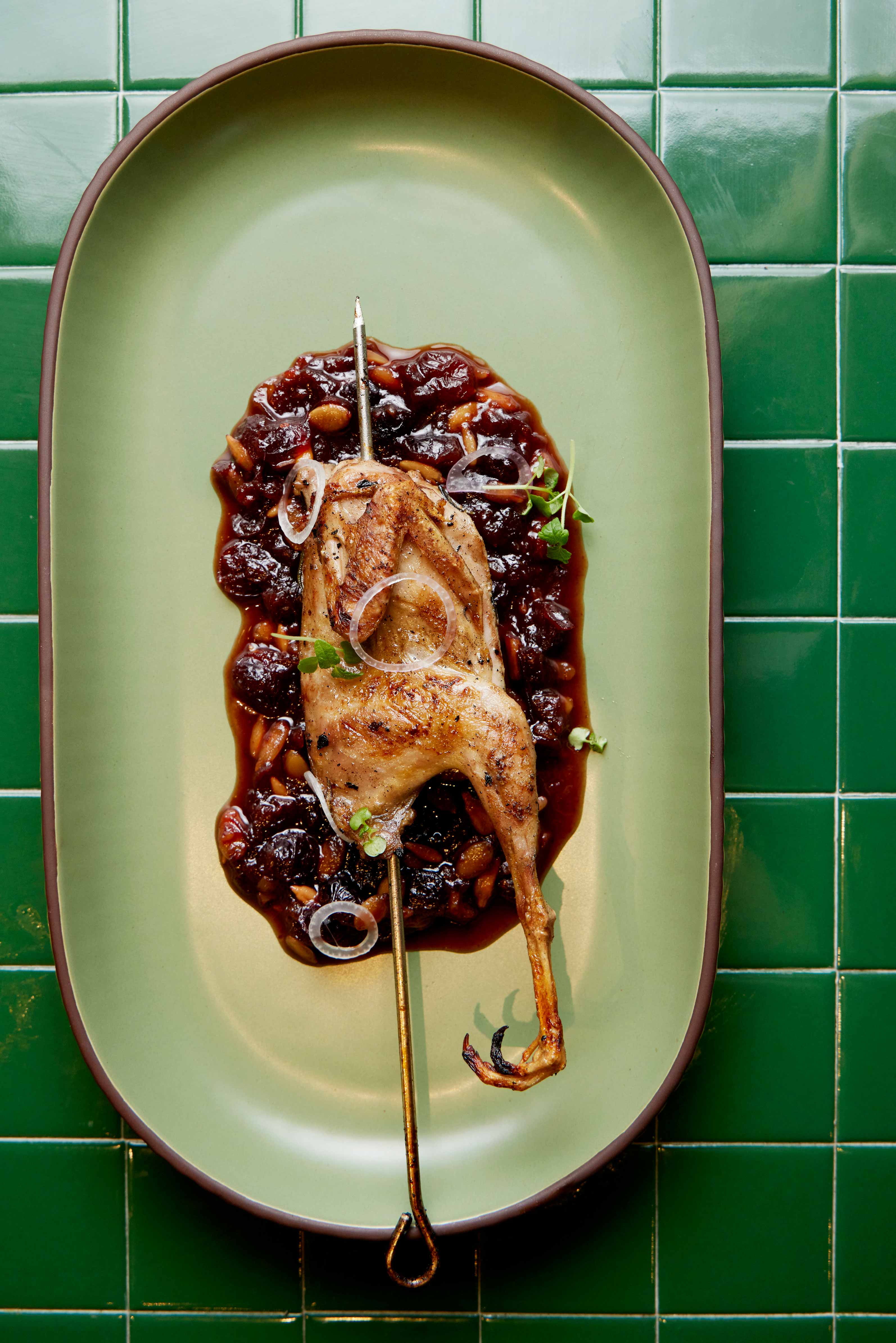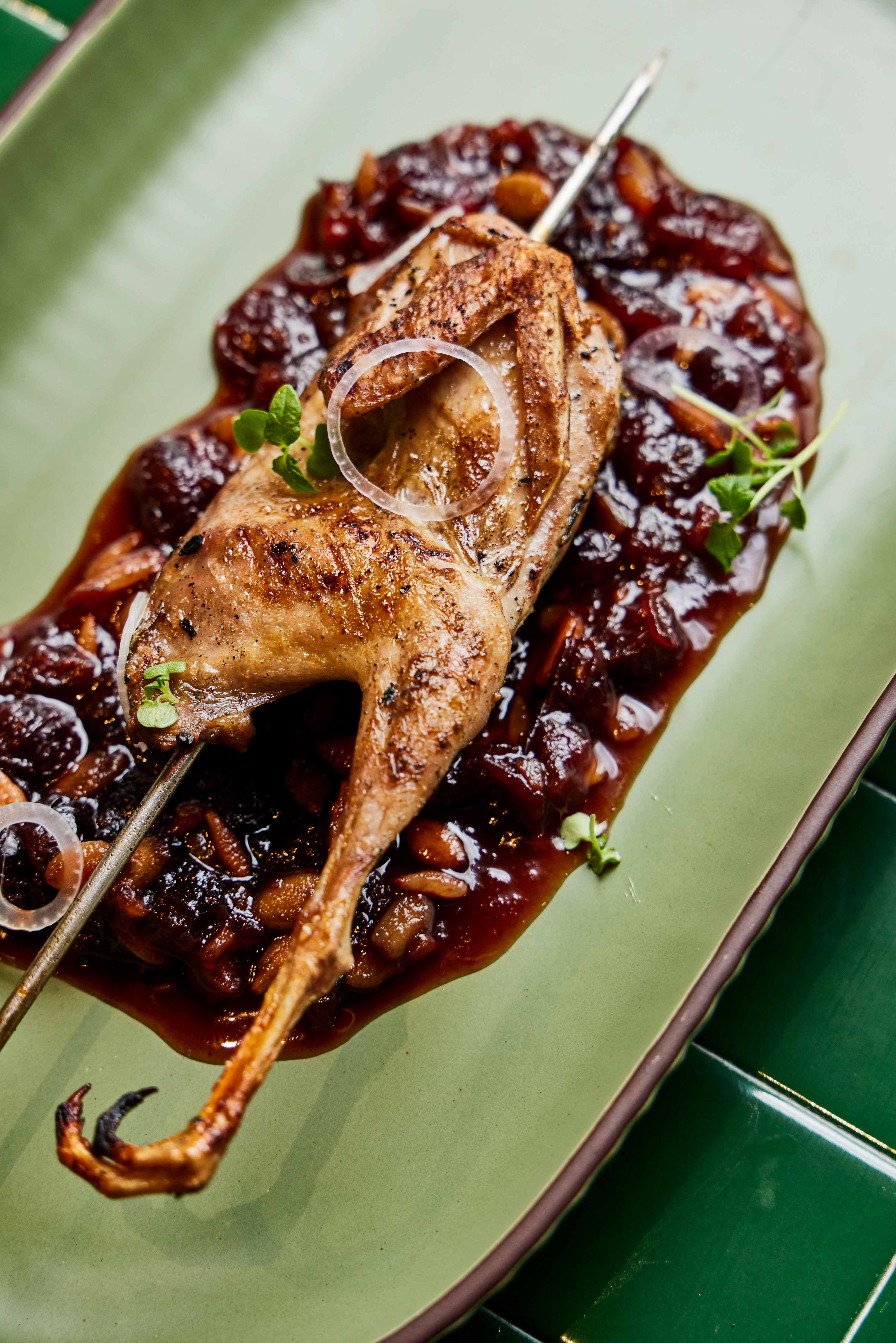 The charcoal-grilled Brisbane Valley quail is tender, not too gamey, and dressed in a sticky, tangy berry-based sauce that lends a festive feel to the dish.