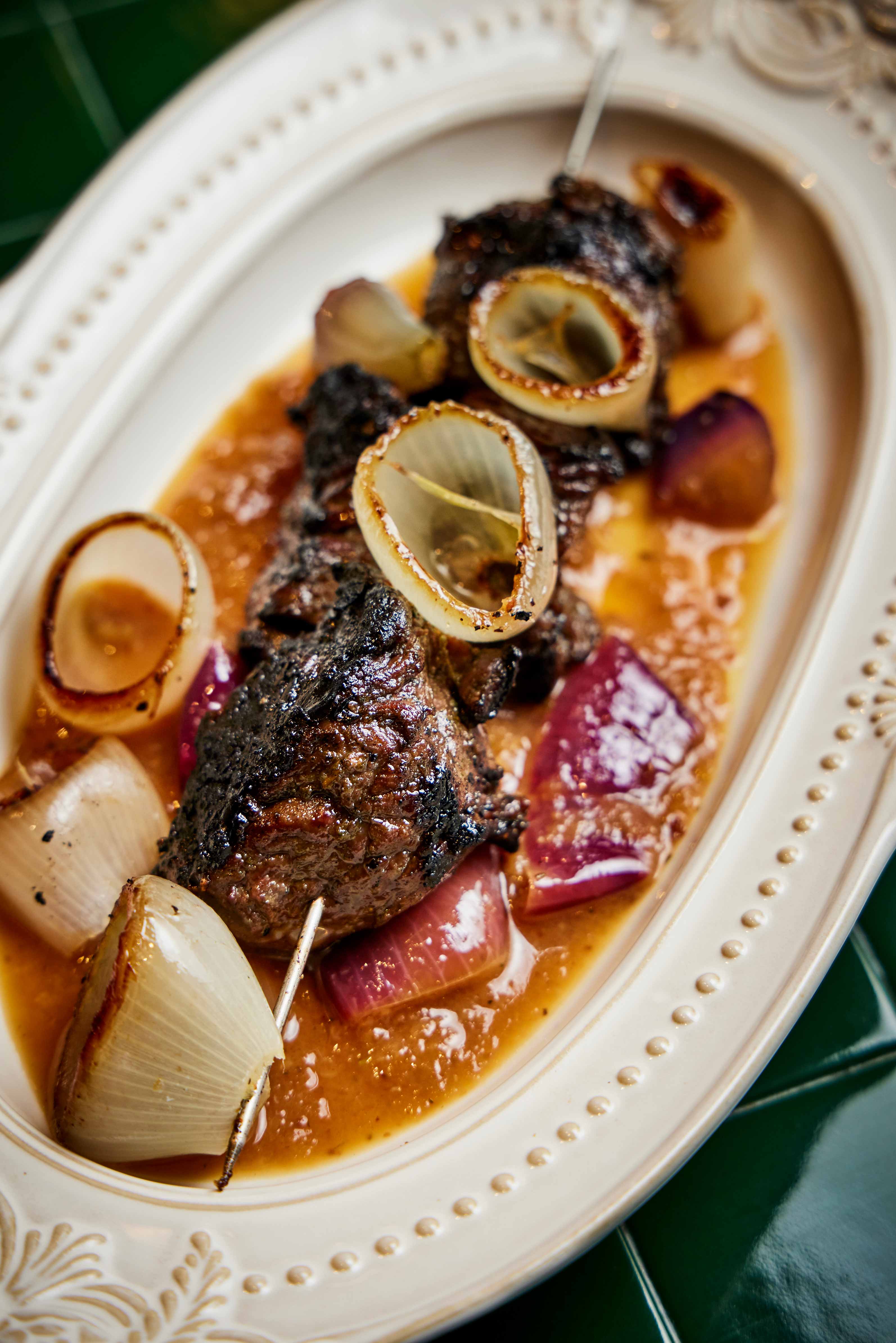 Apart from the slightly overzealous char, the wagyu skewer is tasty and satisfying. The beef is juicy, smoky and fabulously drenched in a bold, layered sherry and cippolini onion (an Italian variety) sauce.