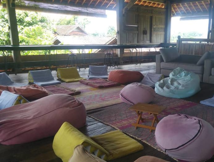The dining area also served as a library, with shelves of books on a range of topics such as spirituality, travel and fiction, and comfortable beanbags and sofas to lounge on.