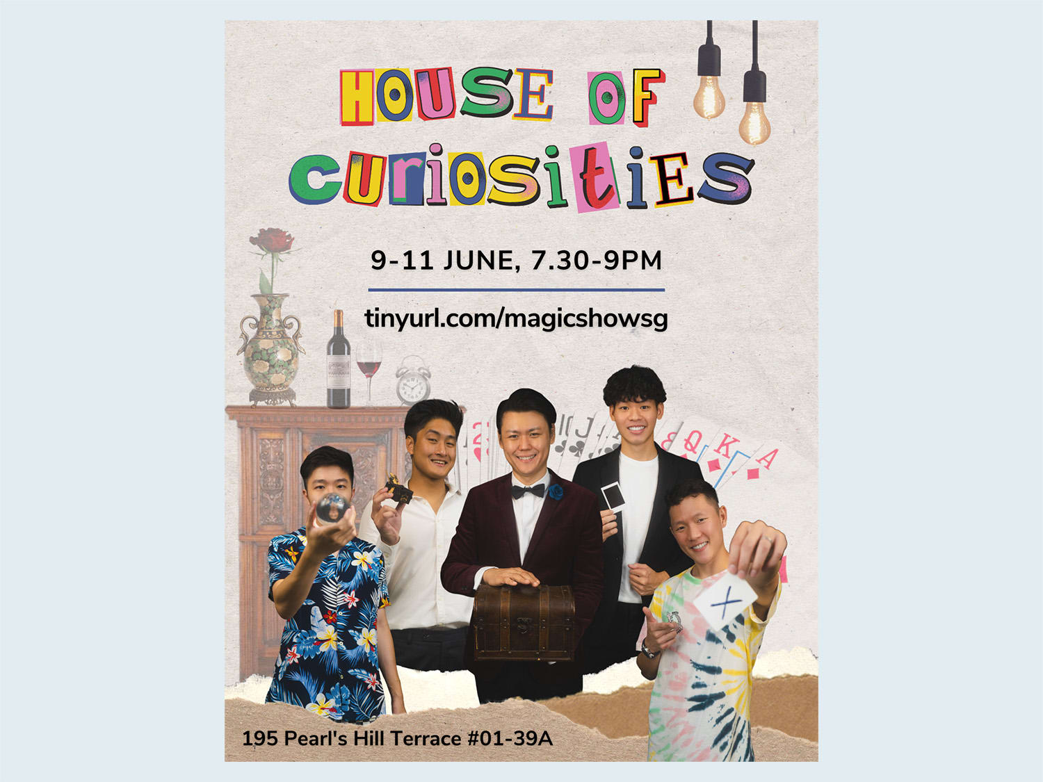 House of Curiosities is an intimate magic theatre performance which features five characters who share their world view of magic. The aim of the show is to evoke curiosity in everyday situations and find magic in things that seem completely ordinary.