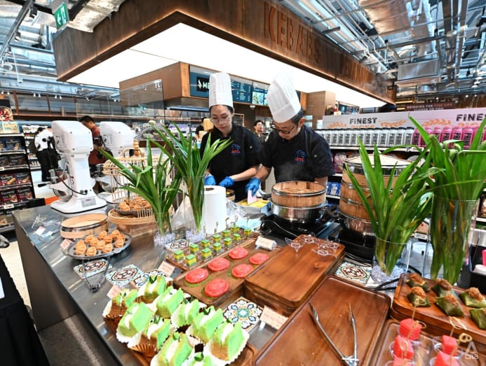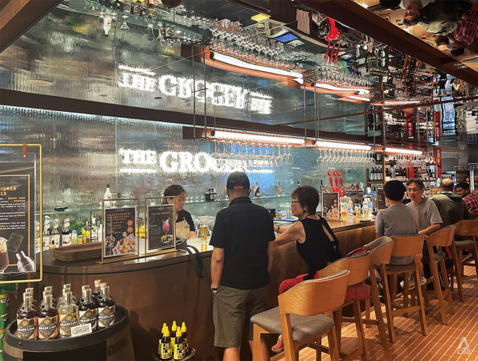 FairPrice Finest Clarke Quay boasts a grocer food hall with six kiosks, and a grocer bar, serving local-themed cocktails. (Photo: CNA/Joyee Koo)