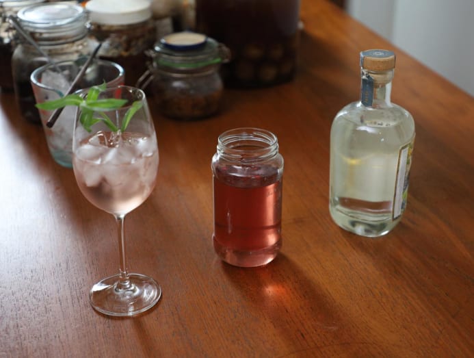 The end result is a sweet-tasting aromatic decoction in a pretty pink hue. “You can use it to make cocktails when you’re hosting your friends – they find it exciting, and you don’t have to pay 24 bucks to a bar for that, when you have your own bar!”, she quipped.