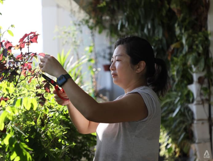 Lecturer Melissa Mak can experiment with cocktails thanks to the herbs and other plants she grows in her HDB garden. (Photo: Vinvisual)