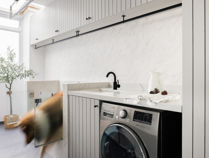 To make bath time ergonomic and safe, Kristie Yong, their interior designer from Lemonfridge Studio, got the dimensions down pat by factoring in the homeowner’s height and the dog’s size. According to her, the real challenge was blending form and function – finding sturdy materials that could take a beating but still match the home's design, so they could slave away in style.