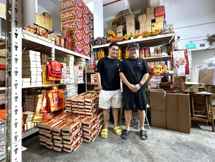 CNA Lifestyle met Teo and Huang in a Pandan Loop warehouse filled with bundles of colourful joss papers (or kim zua in Hokkien), shelves of heady incense sticks and lamp oils, and cardboard replicas of modern goods to satisfy a dearly departed’s every afterlife need (yes, even the latest mobile phone model and skincare product).