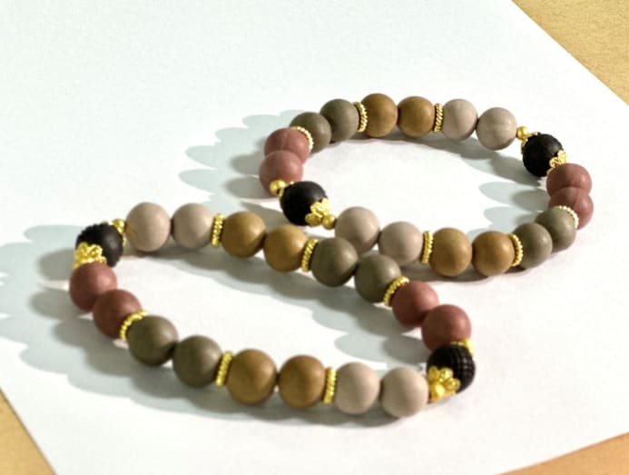 The beads come in five colours – cream, grey, brown, pink and black – and are naturally derived from the herbs. “Each bead colour represents one of the five elements: Metal, wood, water, fire and earth,” said Huang. “We don’t use artificial dyes at all, so you won’t find vibrant colours like neon or Tiffany Blue.”