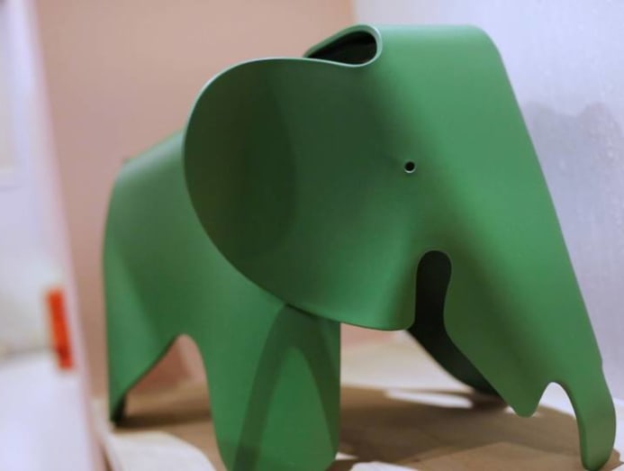 A green Vitra Eames elephant figure is one of many decor accessories to underscore the mid-century modern look of the house. (Photo: The Moving Visuals Co)