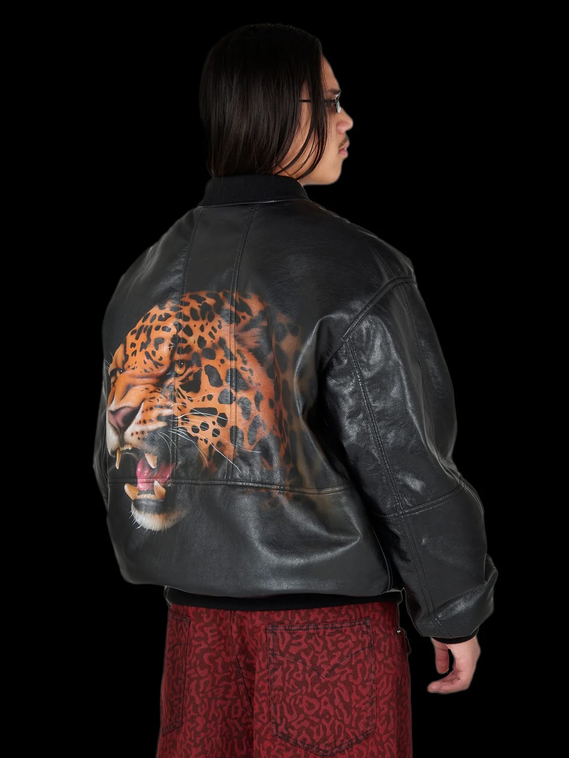 La’s clothes are unabashedly macho: Think faux leather jackets of 1980s Hong Kong gangster flicks, but monster sized; pimp print viscose shirts with matching print pants with a sinister cartoonish glee; streetwear but in the baggiest volumes. Think of every masculine stereotype then add tons of swagger and menacing masculinity, punk and old school hip hop. The iconoclastic singer Billie Eilish is a fan.