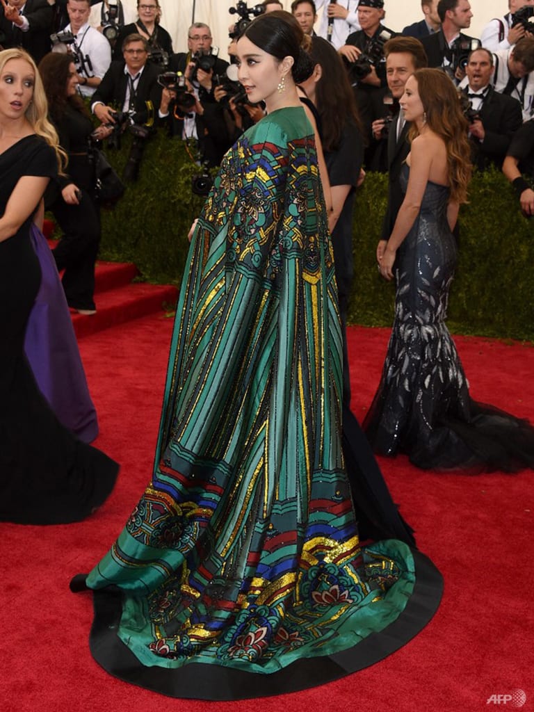 There was the strapless gown that recalled a famille rose vase that Fan wore at the 2012 Cannes Film Festival. For the 2015 Met Gala, Bu dressed Fan in a classic gold-sequinned column gown and a cape patterned like columns in a Ming palace. There were cheongsam-style gowns, bamboo groves, tiger motifs, ink painting goldfish, water sleeves and such. Not only has Bu’s work carved out a place in fashion history for Fan, it also made her an international style icon, as well as making Asian fashion relevant for an entire new generation that wasn’t even born when Issey Miyake was the toast of Paris.
