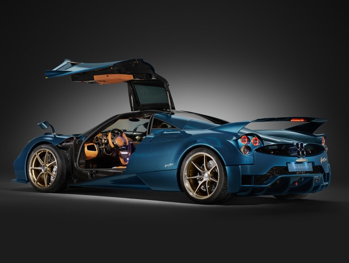 Gull-wing doors always convey a sense of theatrics and in the Epitome, these meet with a beautiful all-blue carbon bodywork accented with gold trim, matched to a contemporary tan-trimmed interior.