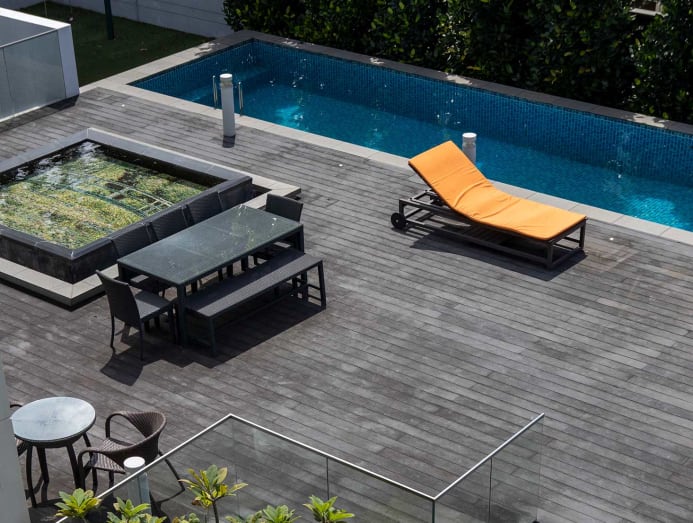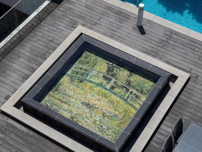 “The idea came about after the owner visited Japanese architect Tadao Ando’s Kyoto Garden of Fine Arts. He selected Claude Monet’s Bridge over a Pond of Water Lilies as [the image for] the underwater mosaic artwork. Its position just next to the pool and outdoor dining area is a conversation piece when the owners host dinners,” said Lee.