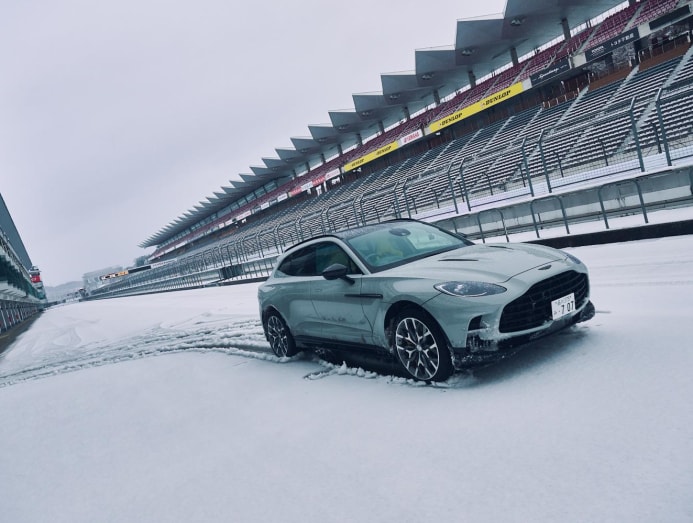 When life gives you lemons, make donuts on ice. That is, ostensibly, what you do when you’re scheduled to test-drive the Aston Martin DBX707 at Fuji Speedway, but the track is completely snowed out the day of.